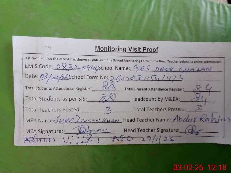 | EMIS Code: 38320444 | Name of School: GES DHOK GHAZAN | |||