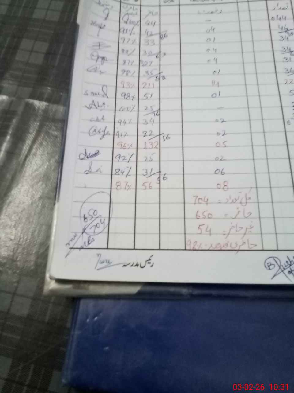 | Total Students Present | 0 | 34 | 36 | 34 | 33 | 40 | 39 | 86 | 63 | 62 | 76 | 56 | 25 | 31 | 650 | |