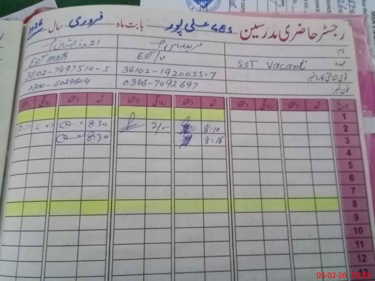 | Name: Ha**** Kh**** Designation: (School Headmaster's/Headmistress's) SST Phone/Cell Number: 03**** |
