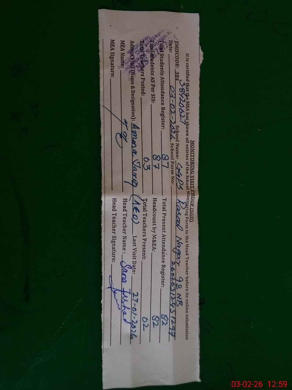 | EMIS Code: 38420627 | Name of School: GGPS RASUL NAGAR CHAK NO.98 NB | |||