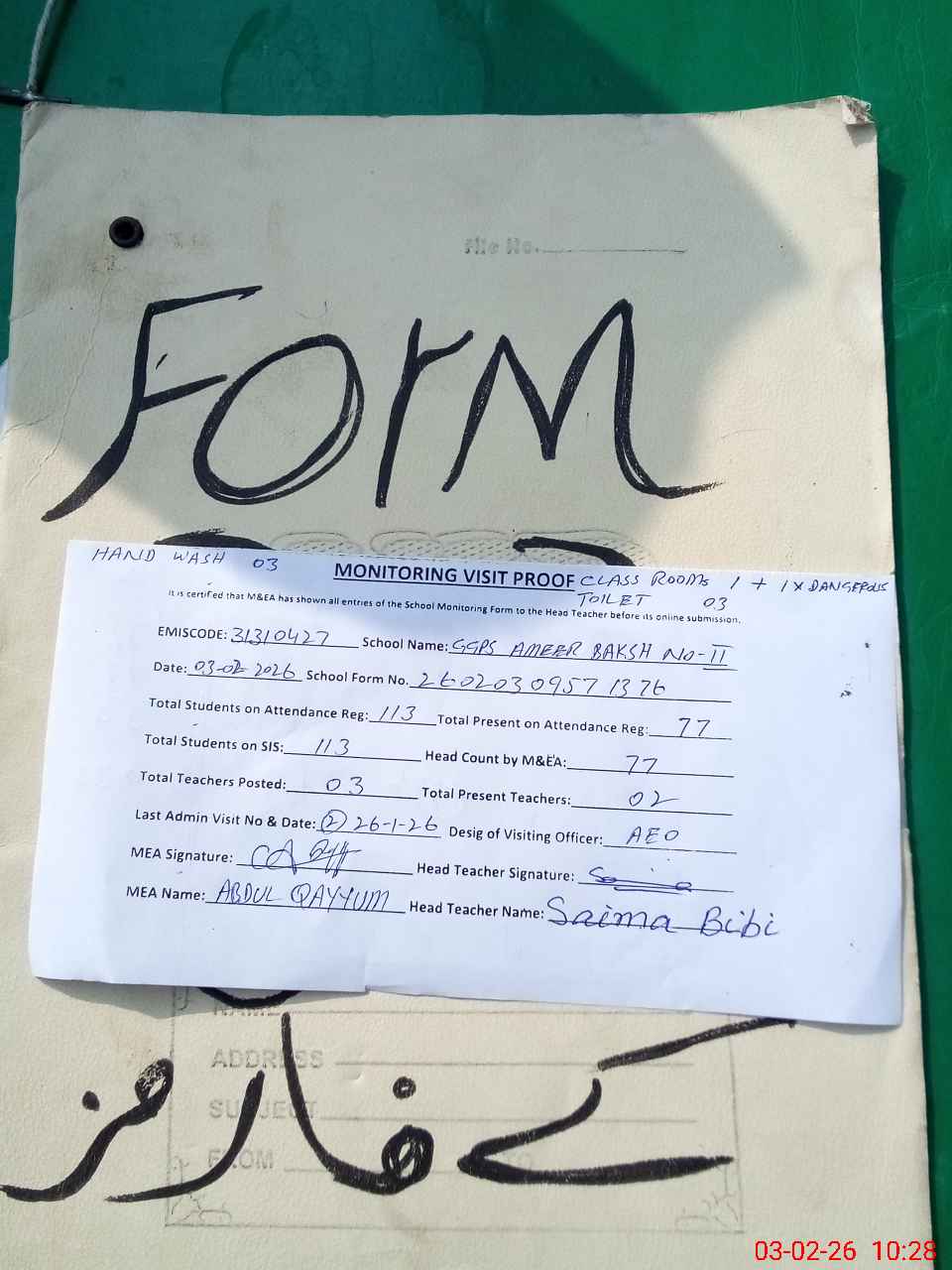 | EMIS Code: 31310427 | Name of School: GGPS BASTI AMEER BUX NO. 2 | |||