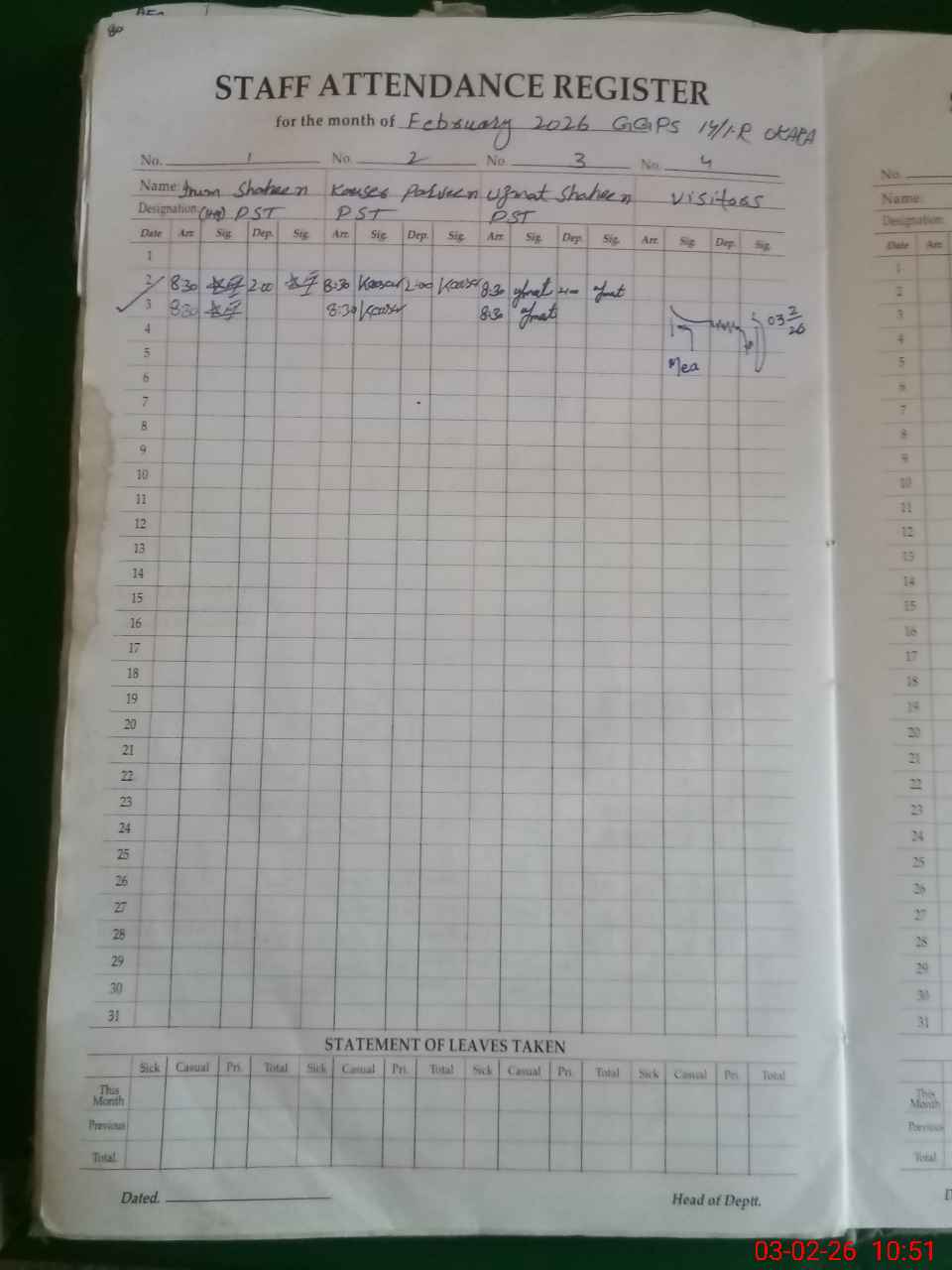 | Leave | Duty | Absent | Maternity | Medical | Ex- Pak |