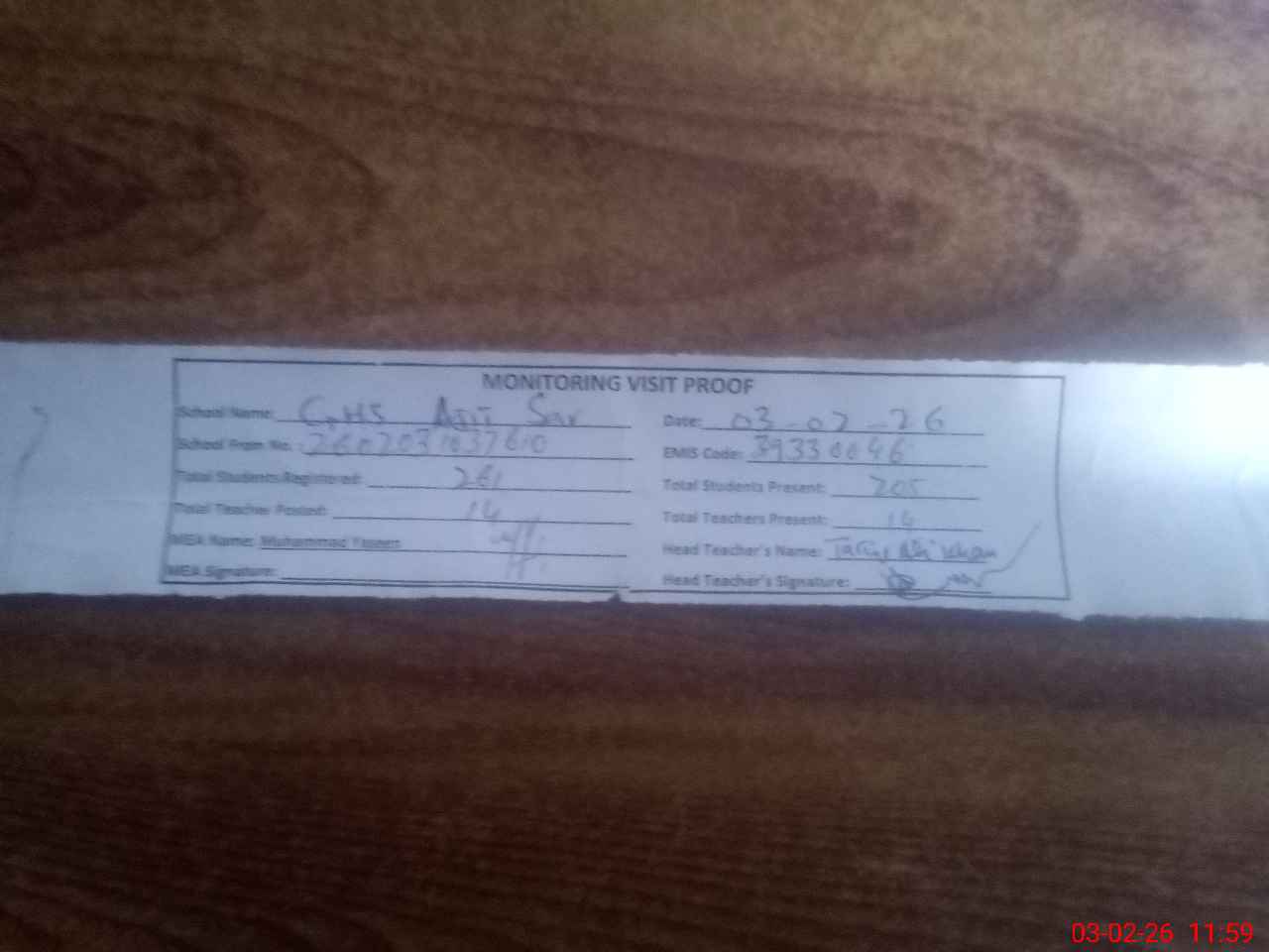 | EMIS Code: 39330046 | Name of School: GHS AJIT SAR | |||