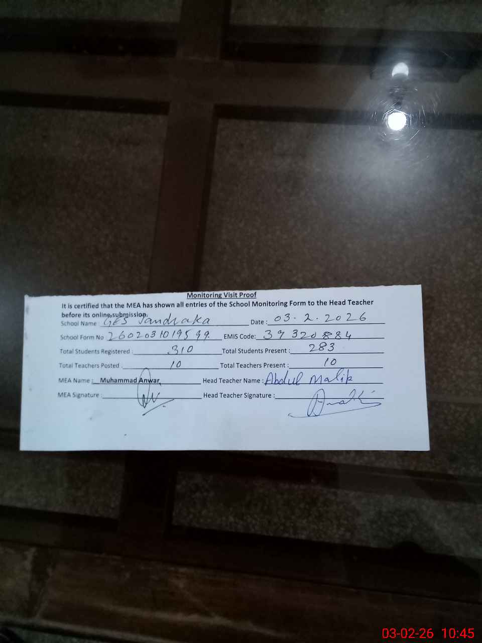 | Certified that this School was Inspected by the Undersigned MEA/DMO Today and the Information Stated Above is as Per Record. | |||||