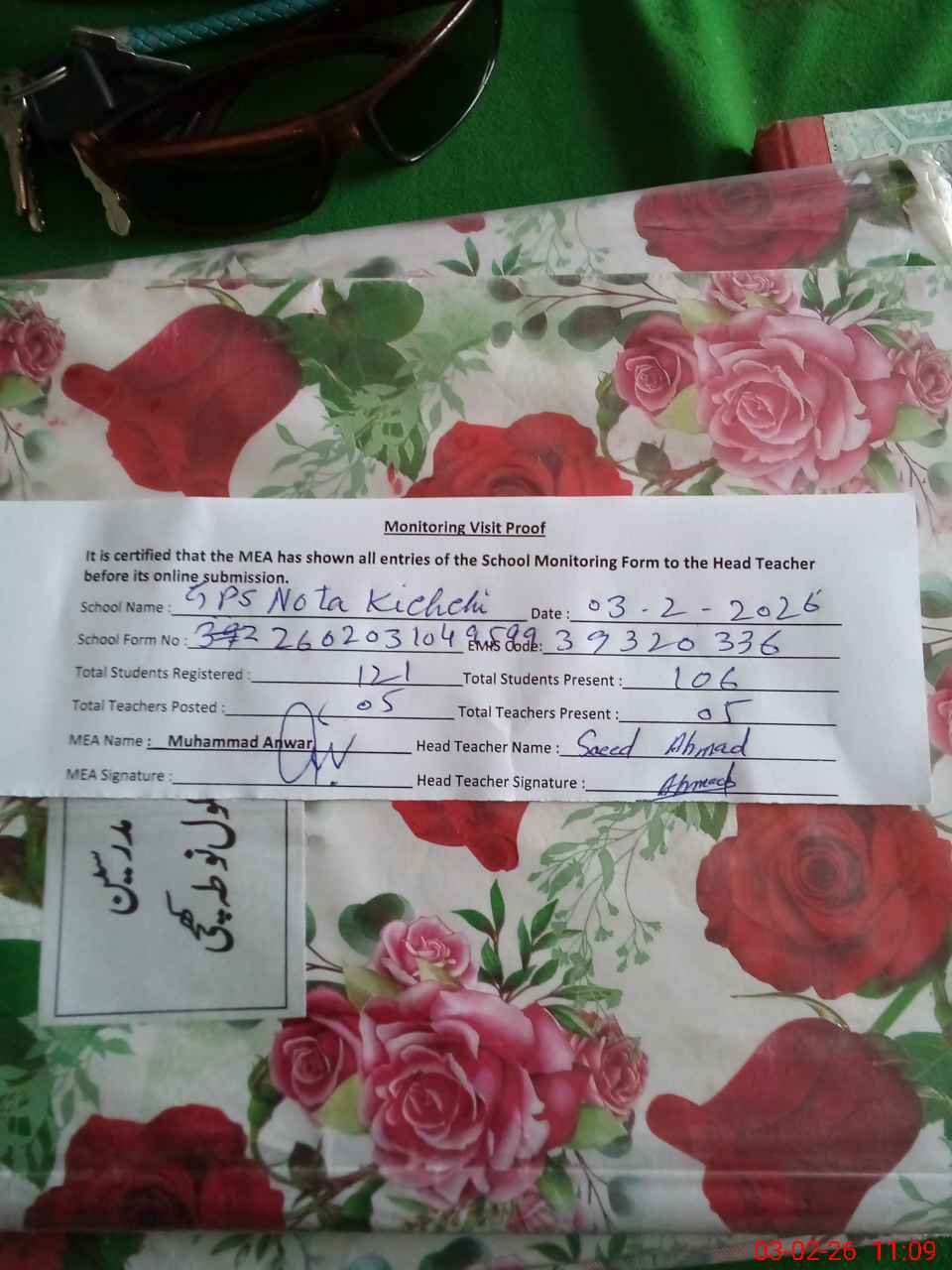 | EMIS Code: 39320336 | Name of School: GPS NOTHA KHICHI | |||