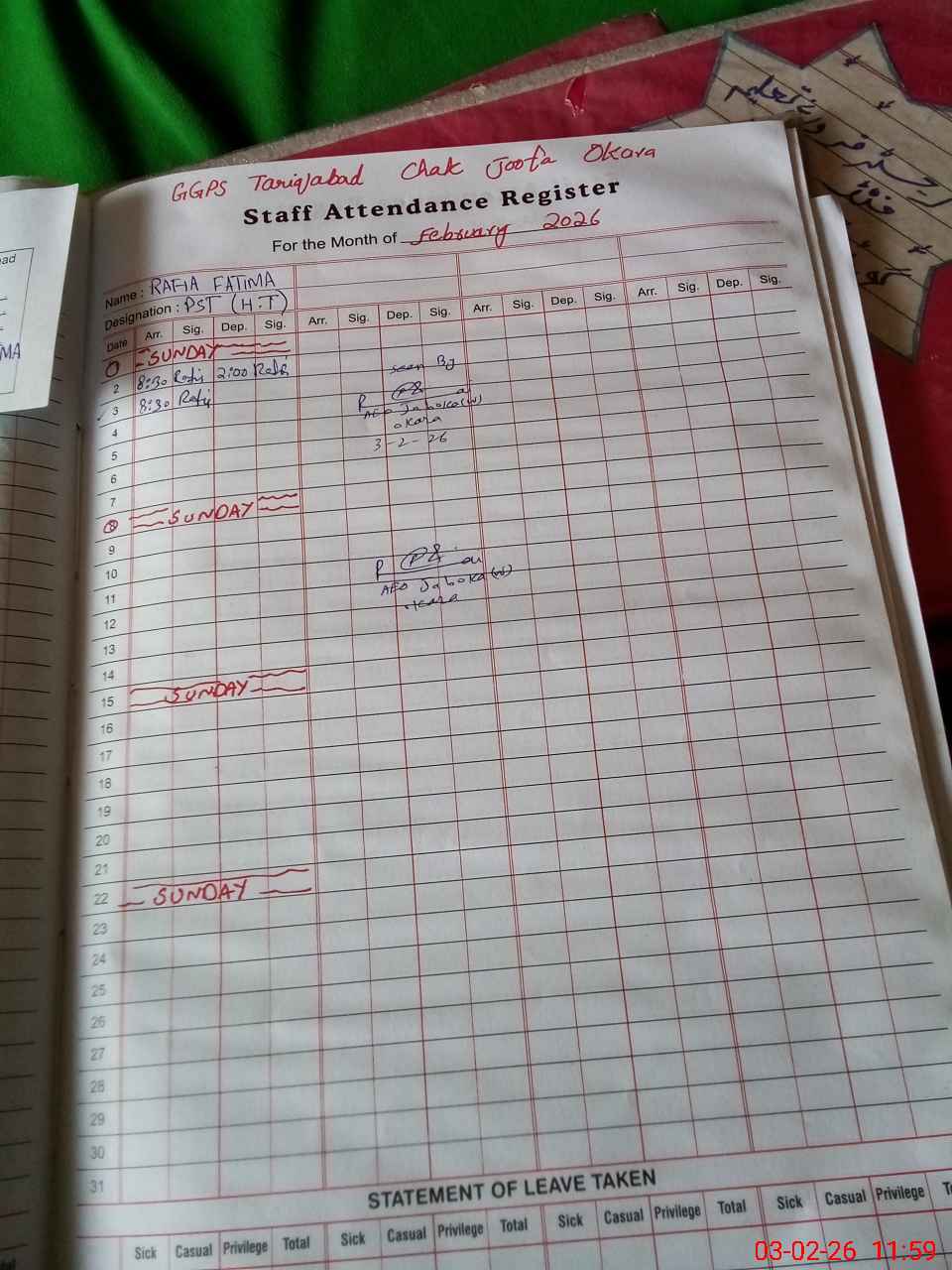 | Name: Ra**** Fa**** Designation: (School Headmaster's/Headmistress's) PST Phone/Cell Number: 03**** |