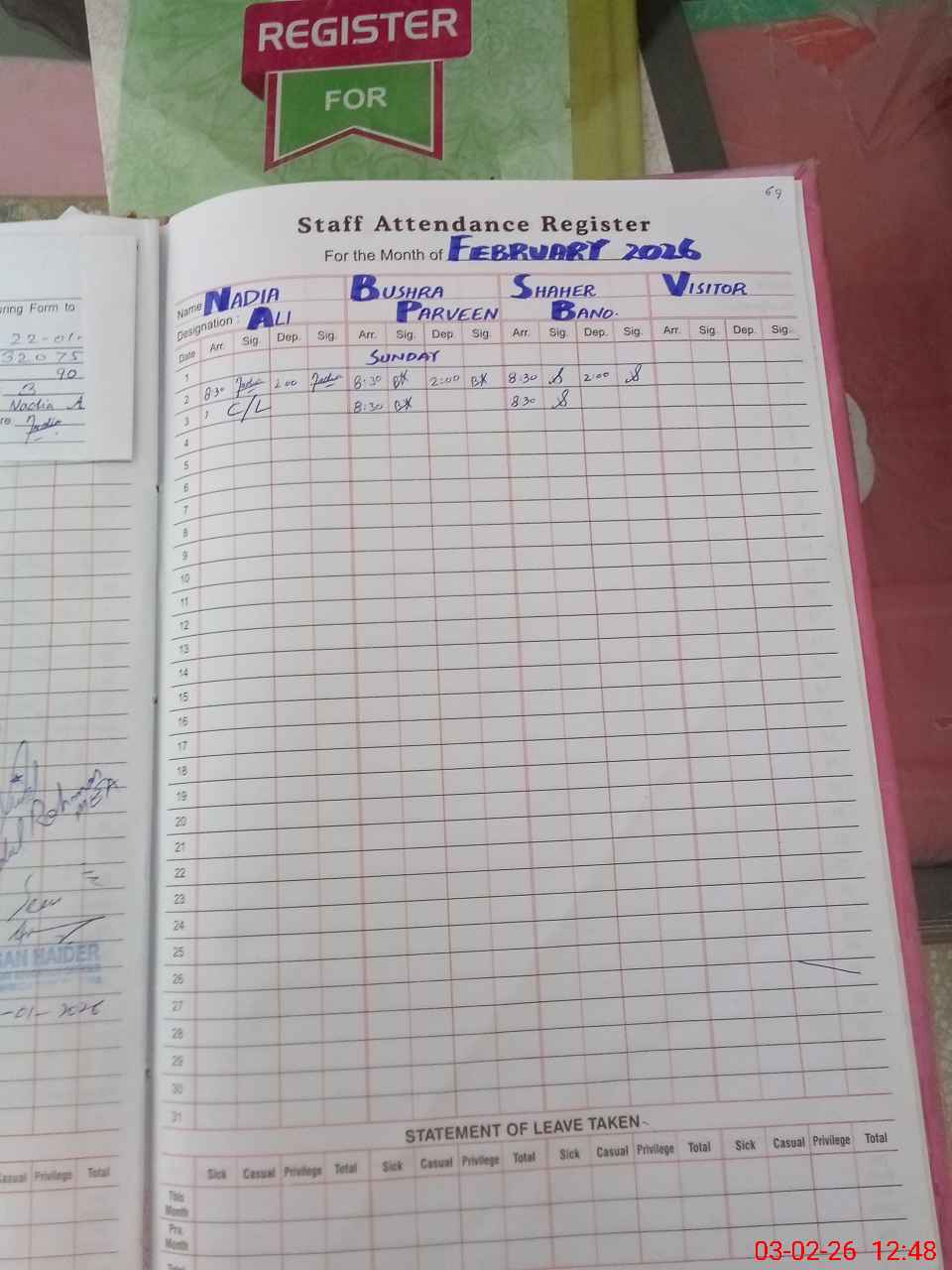 | Leave | Duty | Absent | Maternity | Medical | Ex- Pak |