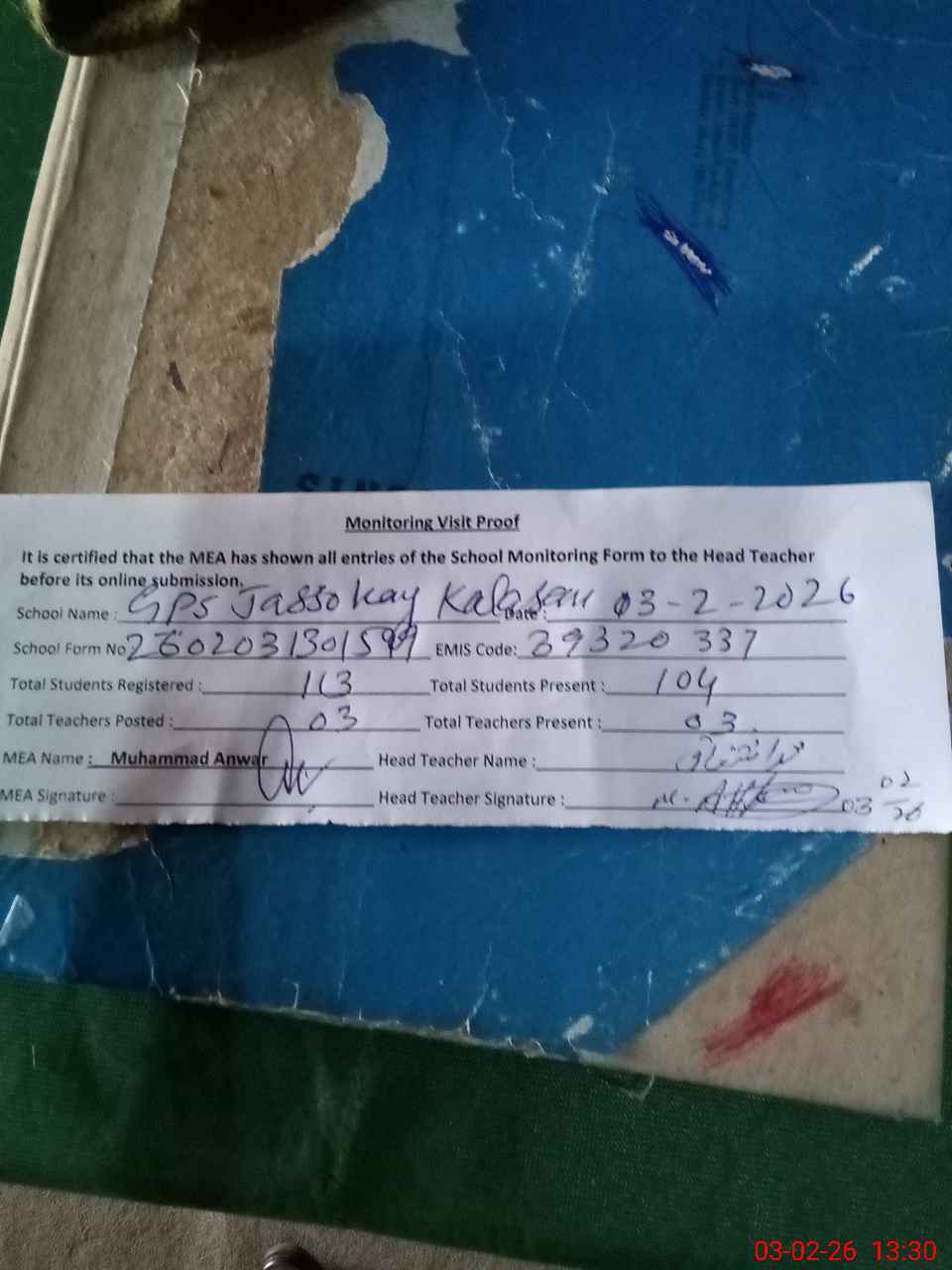 | EMIS Code: 39320337 | Name of School: GPS JASSO KE KALASON | |||