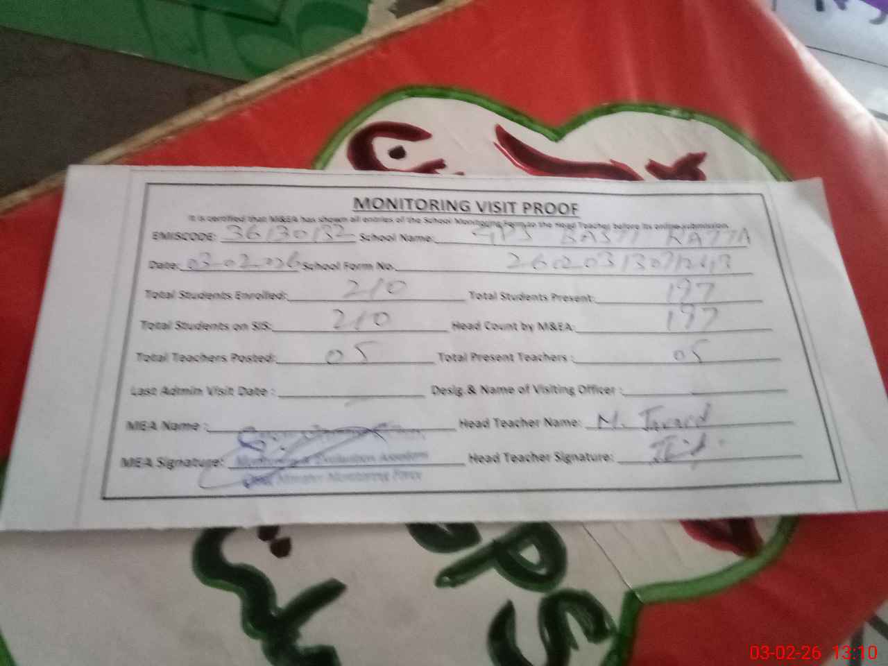 | EMIS Code: 36130132 | Name of School: GPS BASTI RATTA | |||
