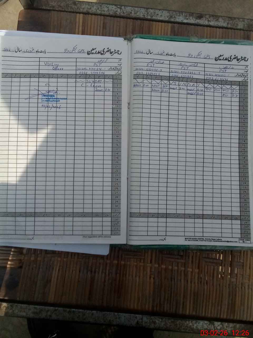 | CNIC | Full Name | Designation | R/C | Absence During Last Calender Month |
