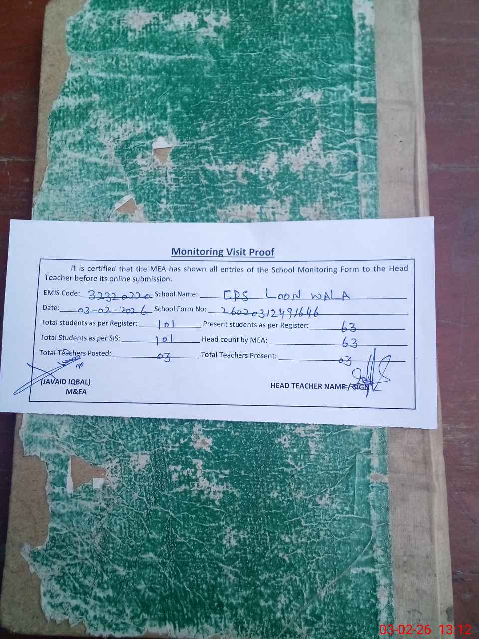 | EMIS Code: 32320220 | Name of School: GPS LOON WALA | |||