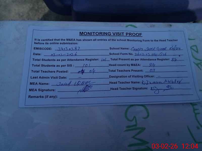 | EMIS Code: 34130387 | Name of School: GMPS SHERGHAR KALAN | |||