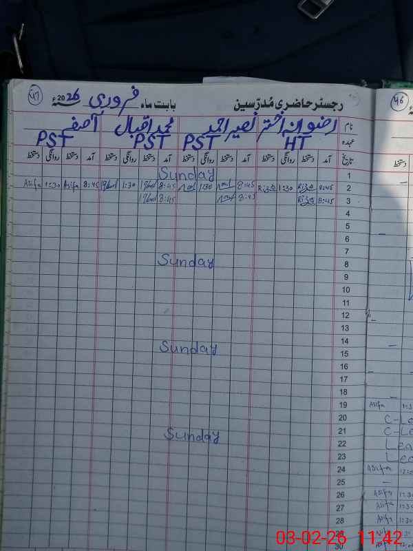 | Name: RI**** AK**** Designation: (School Headmaster's/Headmistress's) PST/PTC/JV Phone/Cell Number: 03**** |