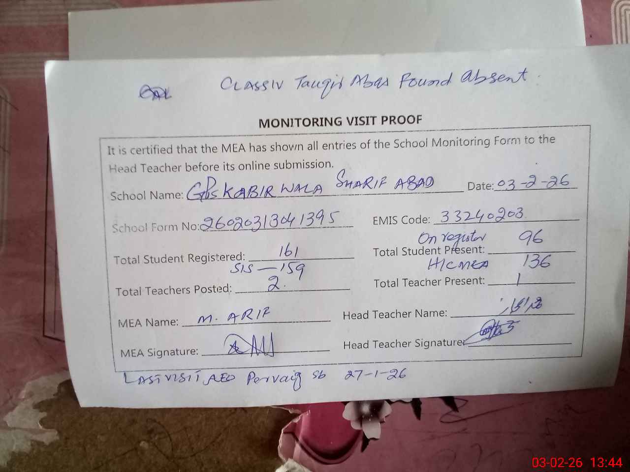 | EMIS Code: 33240203 | Name of School: GPS KABIR WALA SHARIF ABAD | |||