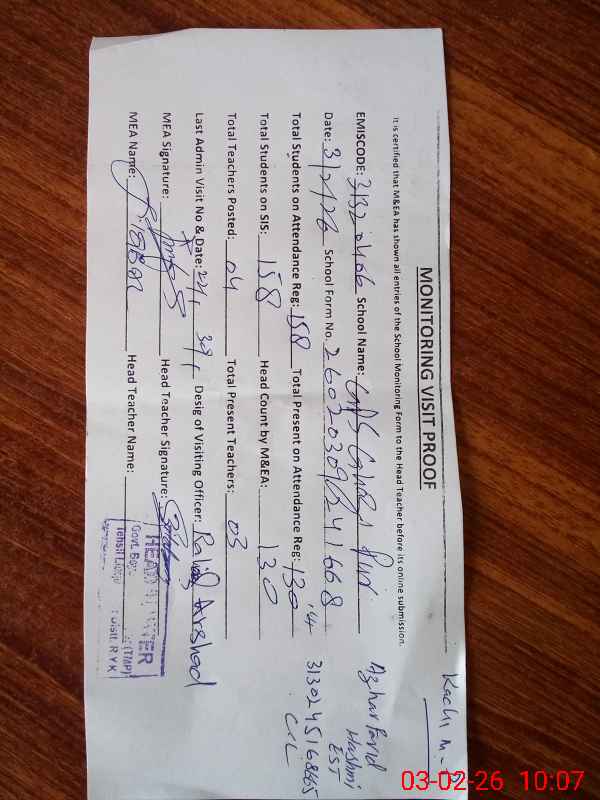 | Attendance Register | Head Teacher | MEA with School | Visit Proof |