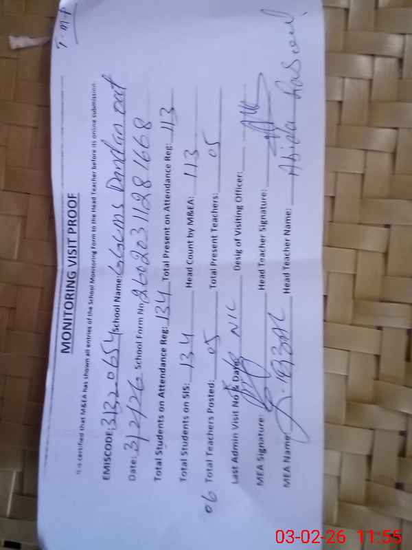 | Attendance Register | Head Teacher | MEA with School | Visit Proof |
