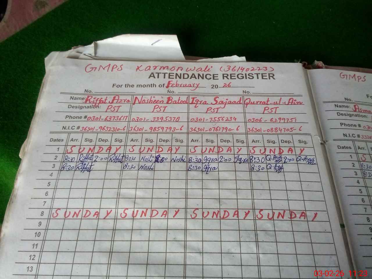 | Name: Ri**** Az**** Designation: (School Headmaster's/Headmistress's) PST Phone/Cell Number: 03**** |