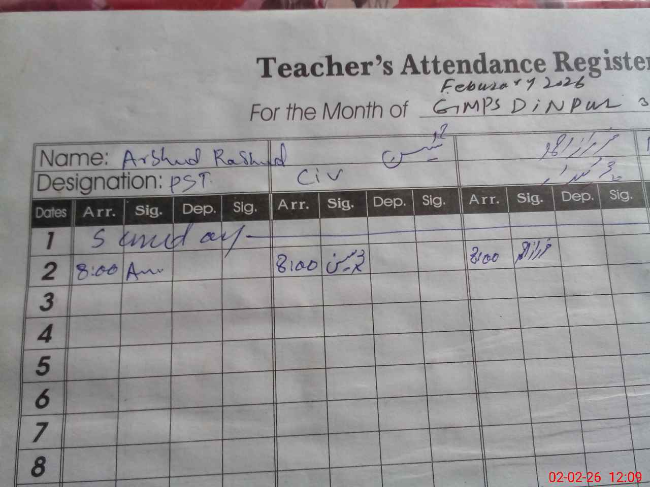 | Name: Ar**** Ra**** Designation: (School Headmaster's/Headmistress's) PST Phone/Cell Number: 03**** |
