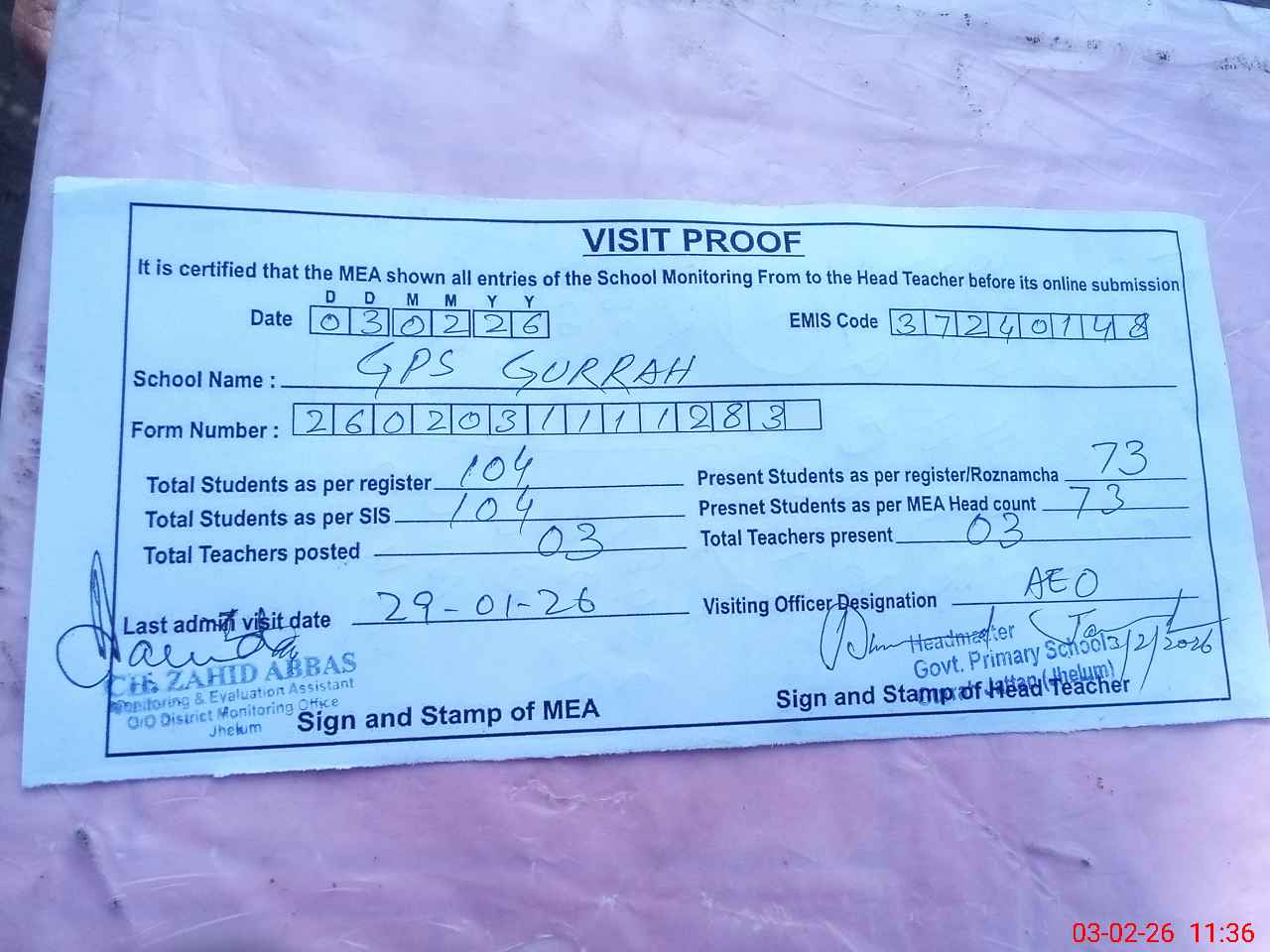 | EMIS Code: 37240148 | Name of School: GPS GURRAH | |||