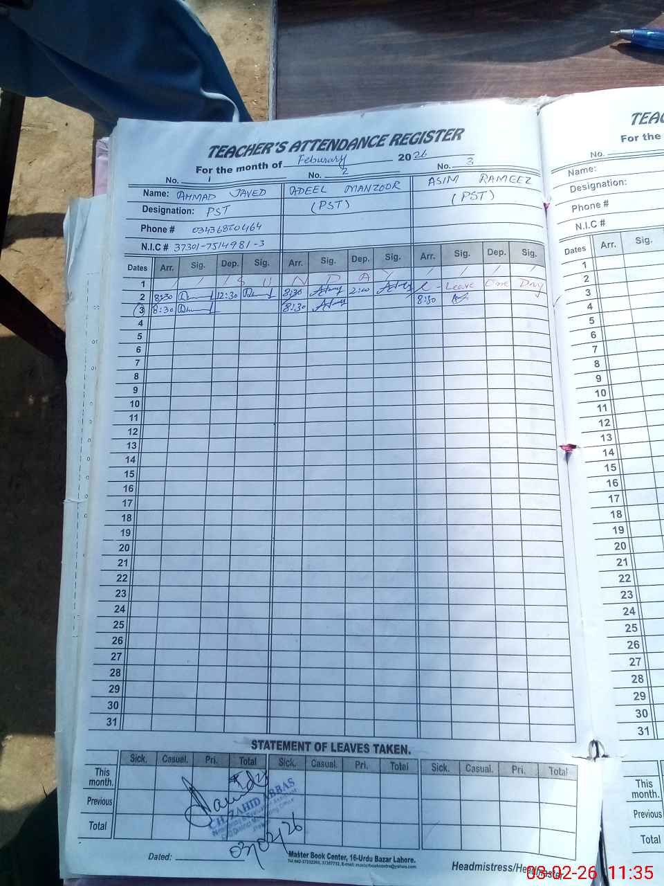 | Name: Ah**** Ja**** Designation: (School Headmaster's/Headmistress's) H T Phone/Cell Number: 03**** |