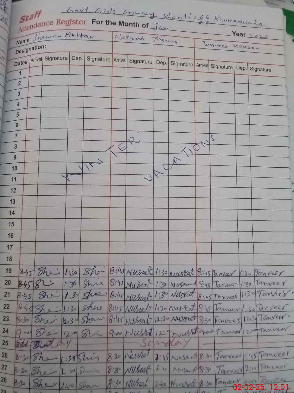 | District: FAISALABAD | Tehsil: JARANWALA | Markaz: KHURRIANWALA - FEMALE | Level: Primary | |