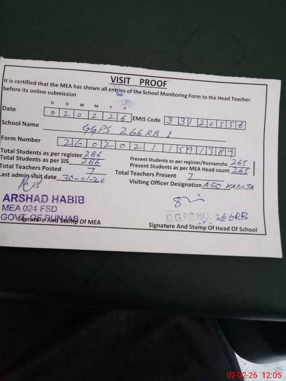 | EMIS Code: 33120556 | Name of School: GGPS CHAK 266 RB I GHOSIA COLONY KHURRIANWALA | |||