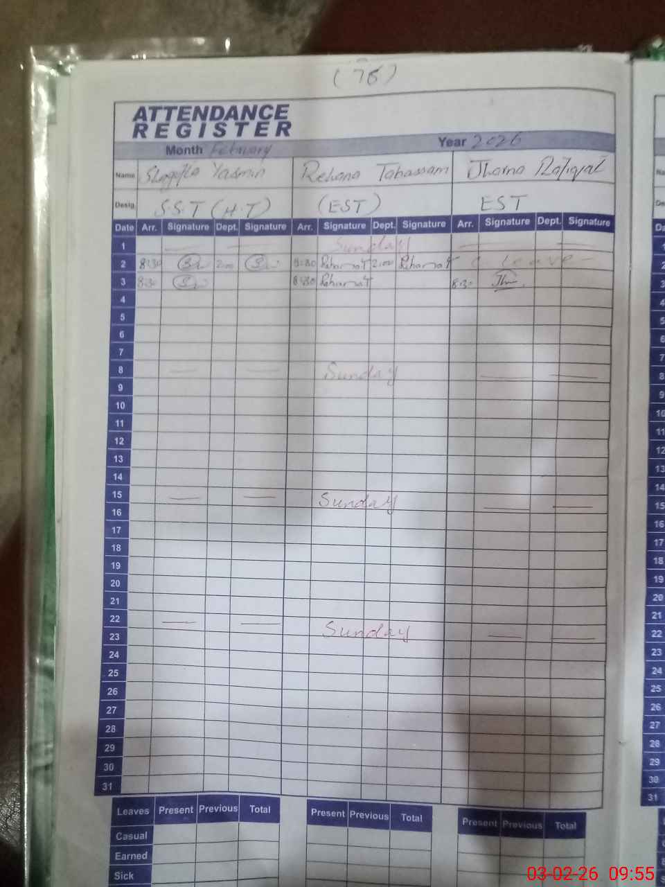 | Monitoring Date: 03-02-2026 | Start Time: 03-02-2026 09:15 AM | End Time: 03-02-2026 09:56 AM | Name of MEA: AR**** HA**** | |