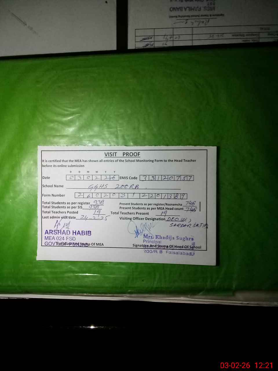 | EMIS Code: 33120757 | Name of School: GGHS CHAK 200 RB | |||