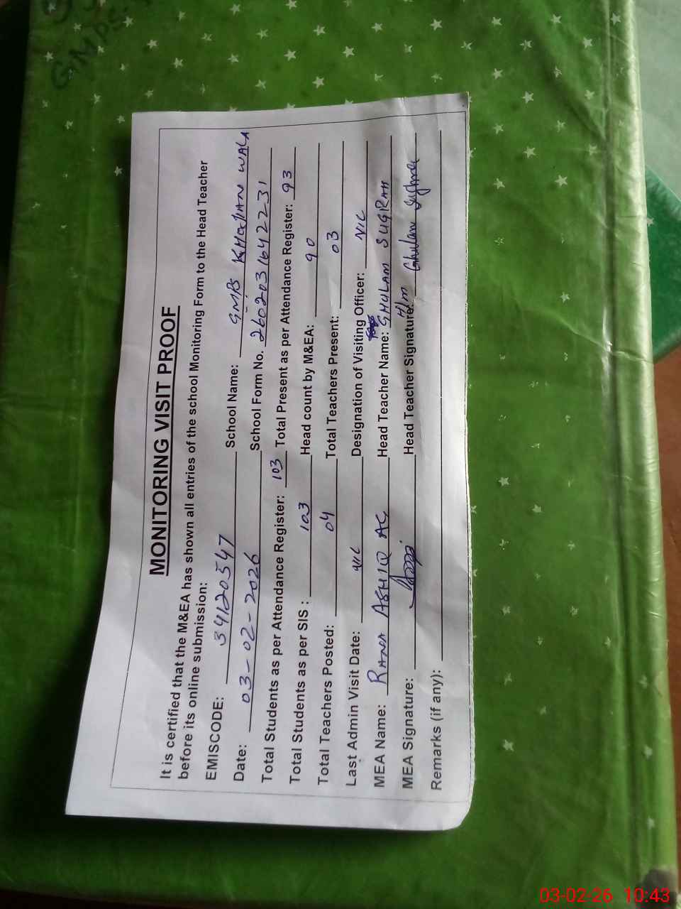 | EMIS Code: 34120547 | Name of School: GMPS KHOJIAN WALA | |||