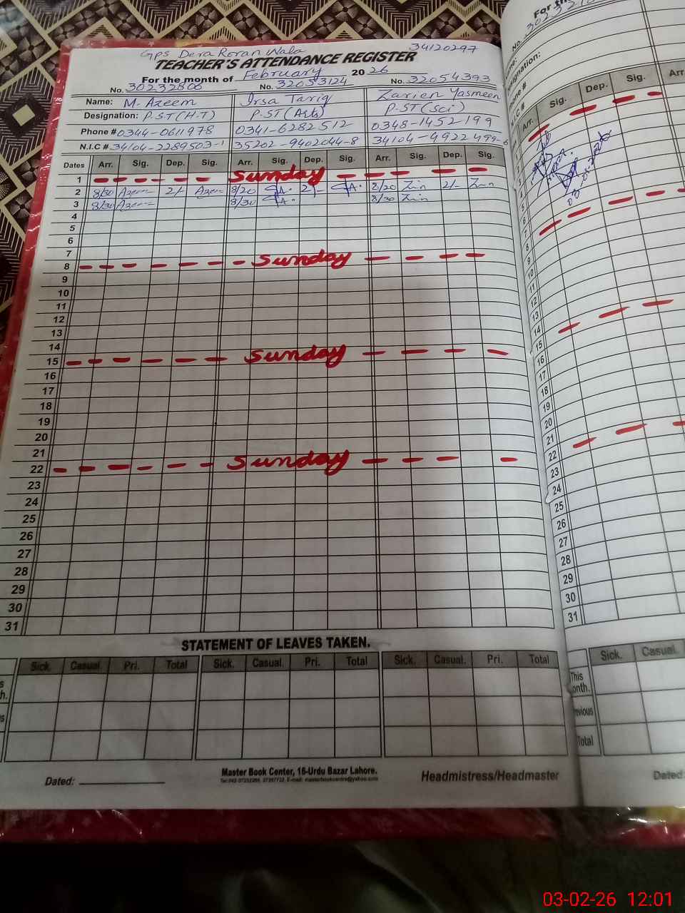 | Name: MAz**** Designation: (School Headmaster's/Headmistress's) PST Phone/Cell Number: 03**** |