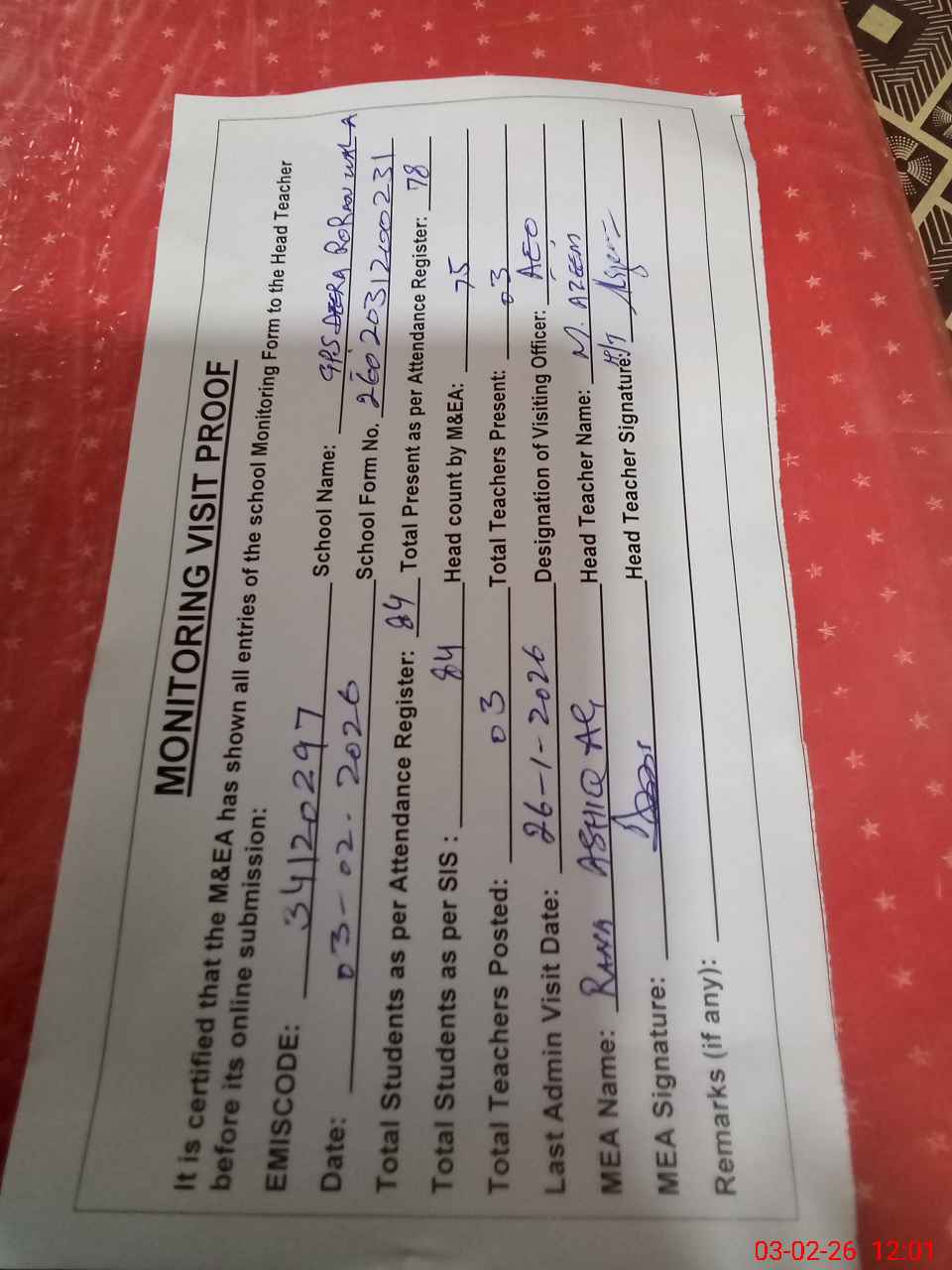 | EMIS Code: 34120297 | Name of School: GPS DERA RORAN WALA RASUL NAGAR | |||