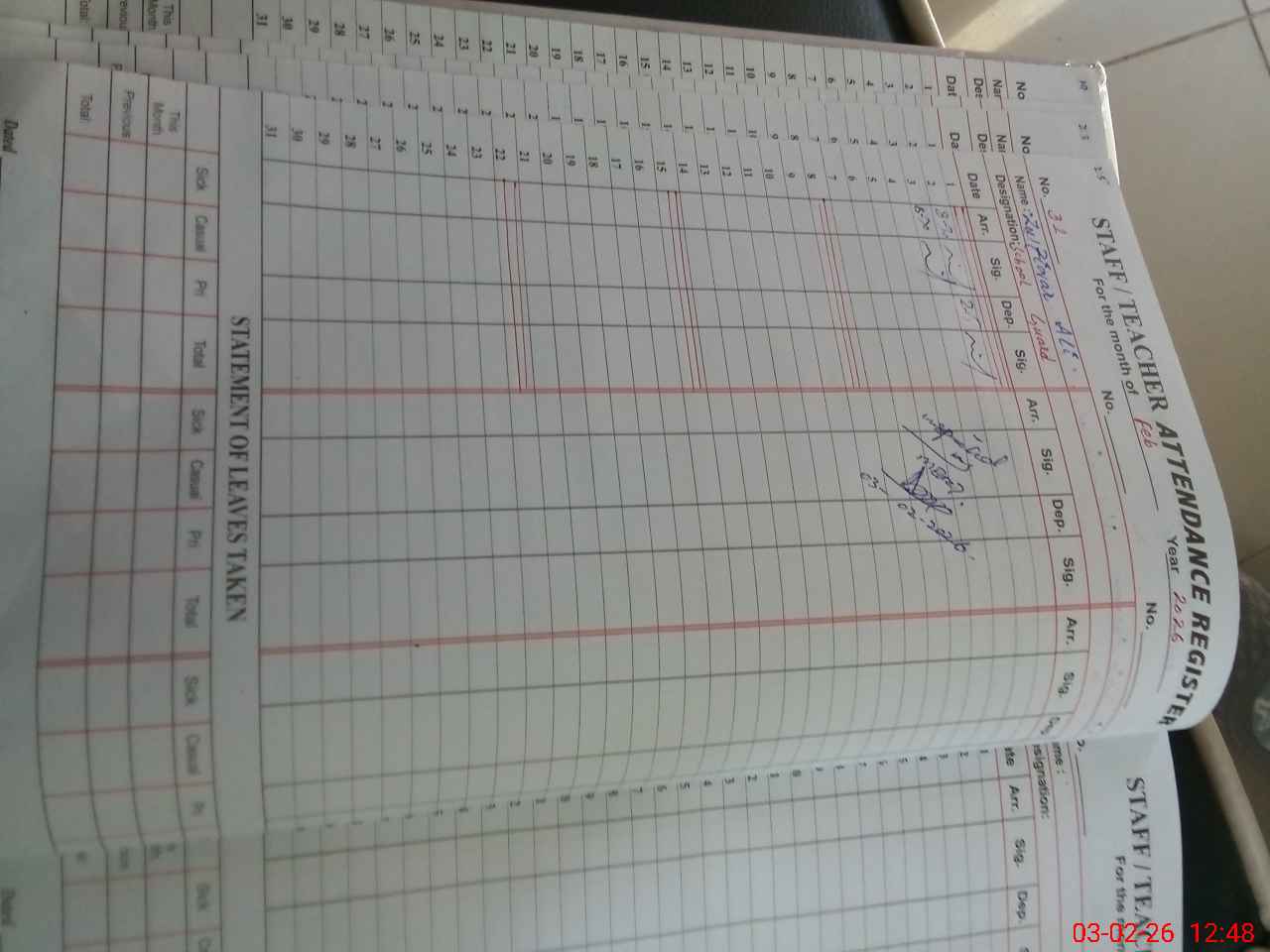 | CNIC | Full Name | Designation | R/C | Absence During Last Calender Month |