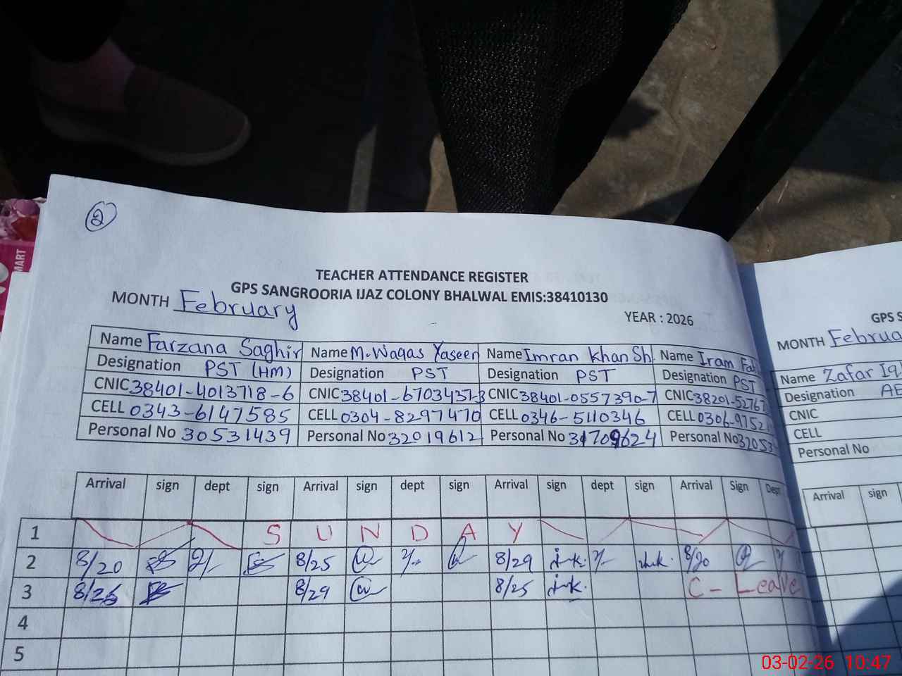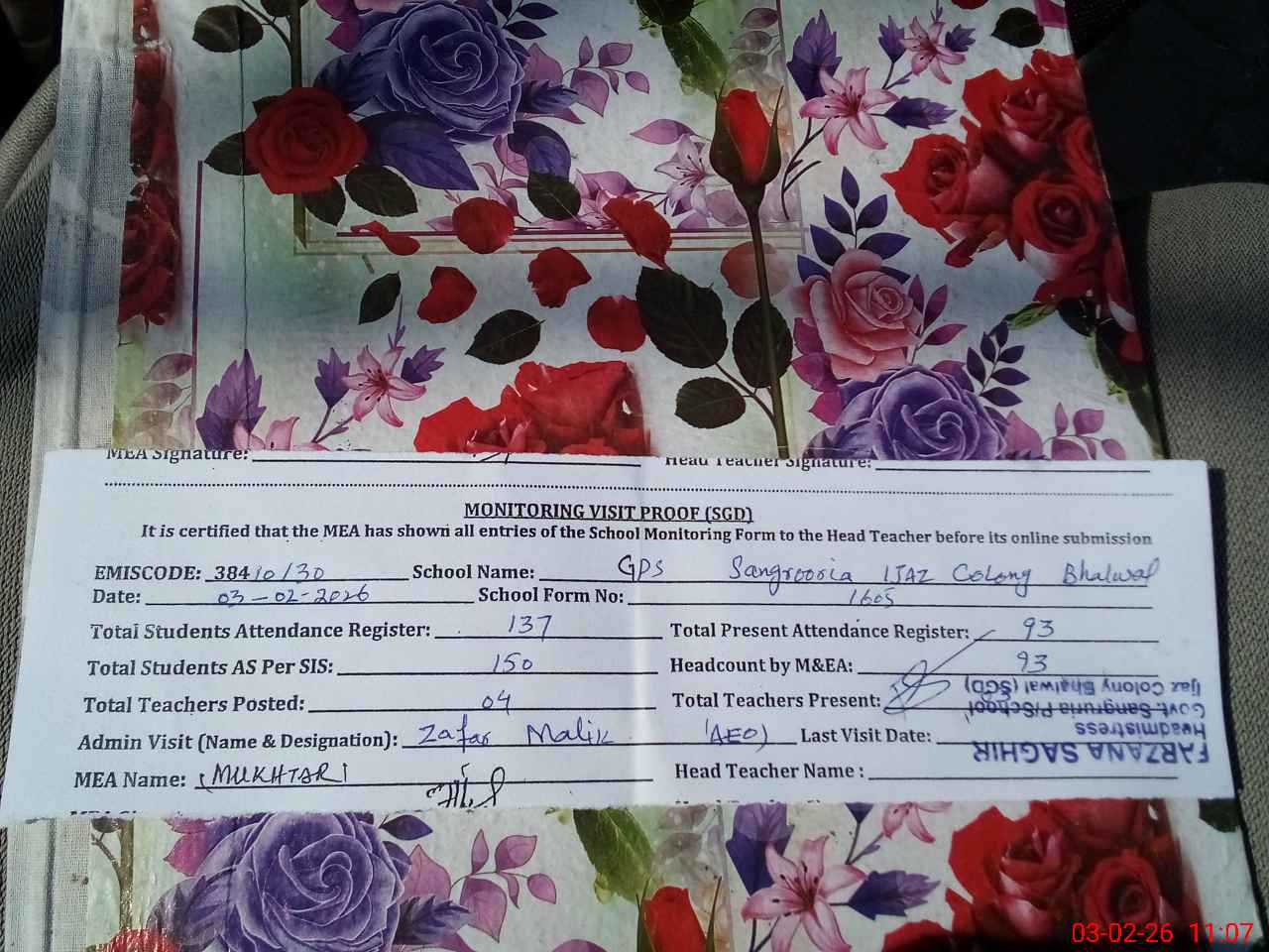 | EMIS Code: 38410130 | Name of School: GPS SANROORIA BHALWAL IJAZ COLONY | |||
