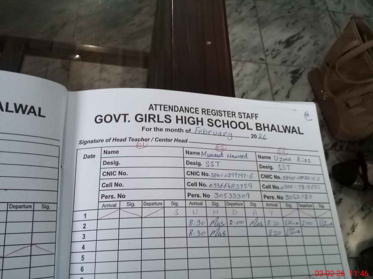 | Name: MU**** NA**** Designation: (School Headmaster's/Headmistress's) Incharge Phone/Cell Number: 03**** |
