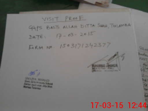 | EMIS Code: 36430379 | Name of School: GGPS BASTI ALLAH DITTAH SHAH, TULAMBA | |||