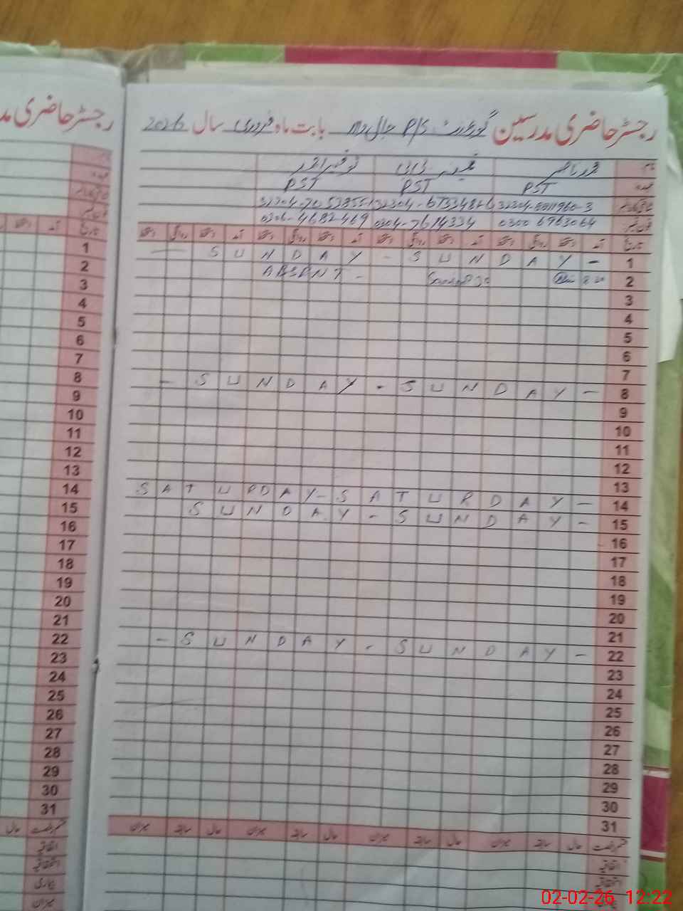 | Name: WA**** SH**** Designation: (School Headmaster's/Headmistress's) PST Phone/Cell Number: 03**** |