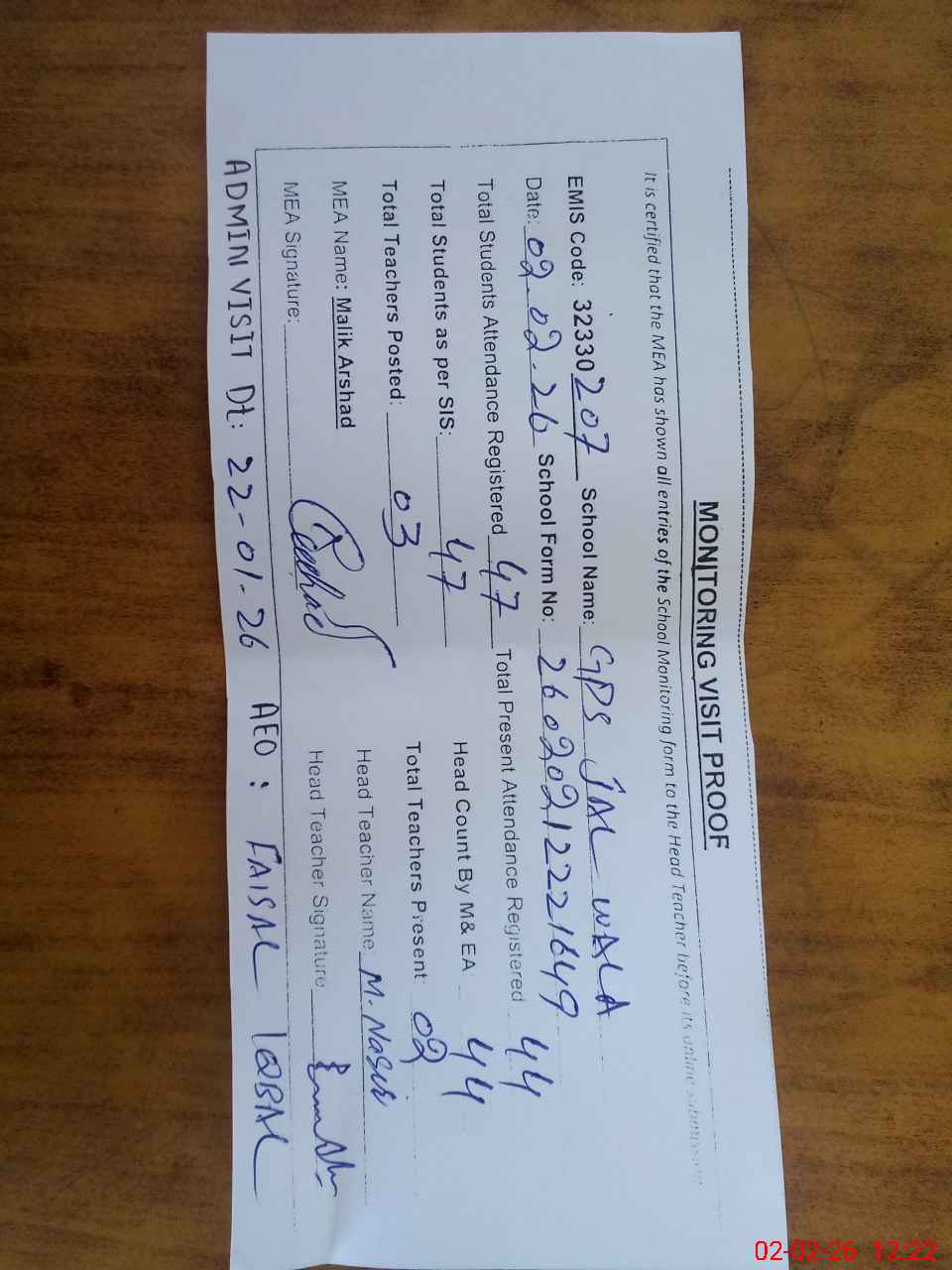 | EMIS Code: 32330207 | Name of School: GPS JAL WALA | |||