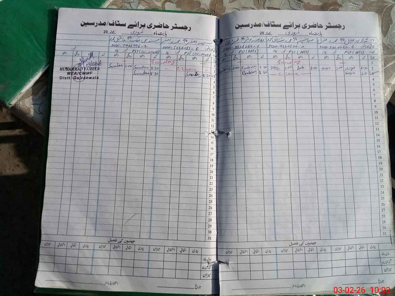 | Name: SH**** TU**** Designation: (School Headmaster's/Headmistress's) PST Phone/Cell Number: 03**** |