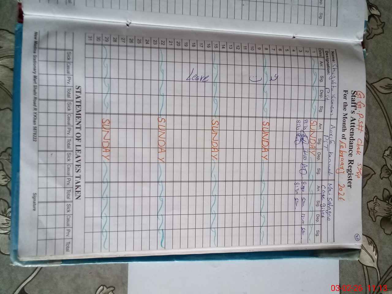 | Name: Sh**** Ya**** Designation: (School Headmaster's/Headmistress's) PST Phone/Cell Number: 03**** |