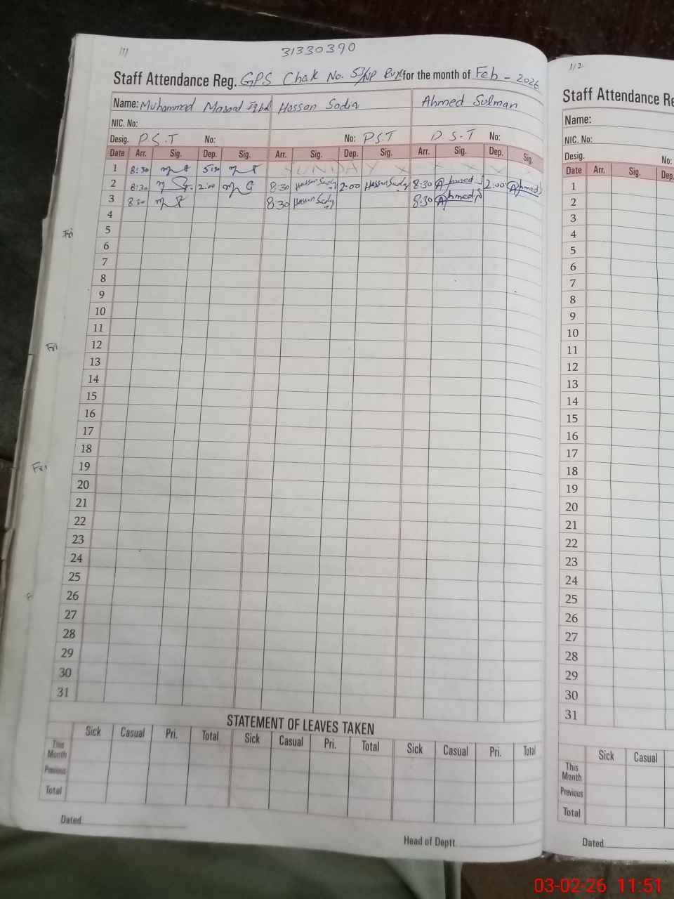 | Name: Mu**** Ma**** Iq**** Designation: (School Headmaster's/Headmistress's) PST Phone/Cell Number: 03**** |
