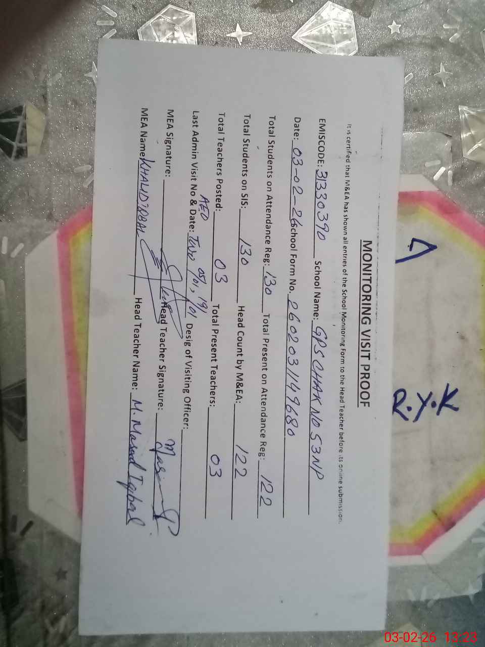 | EMIS Code: 31330390 | Name of School: GPS CHAK NO. 53 NP | |||