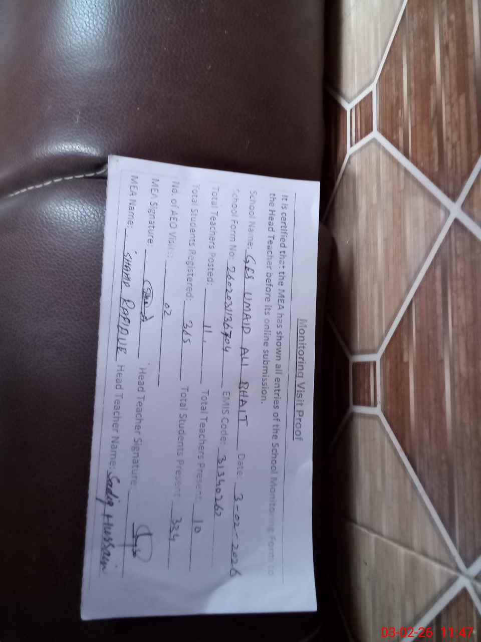 | EMIS Code: 31340267 | Name of School: GES UMAID ALI BHAIT | |||