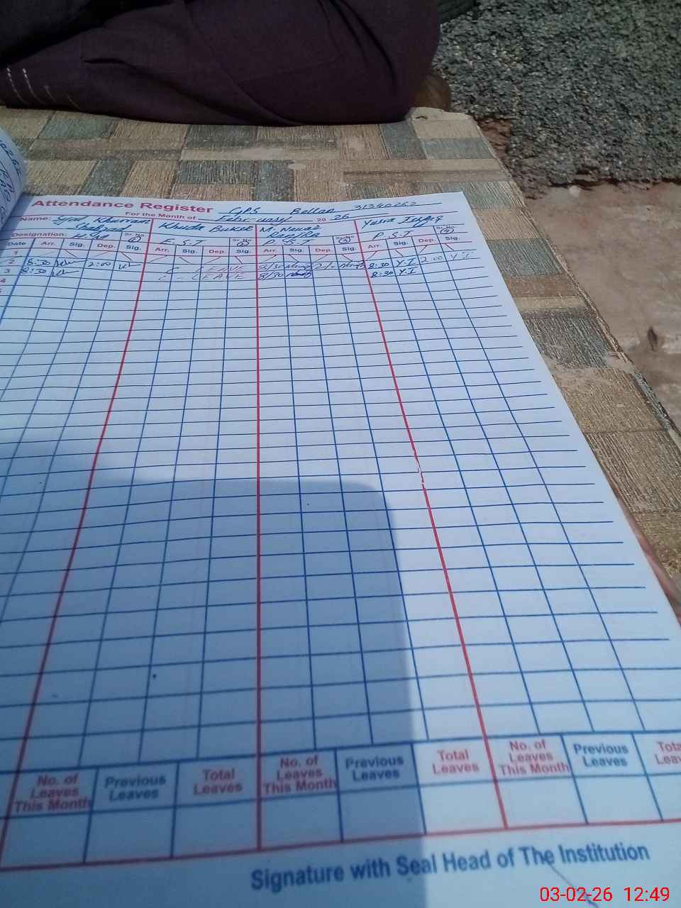 | Total no. of Classrooms: 5 No. of Classrooms Used for Teaching: 3 No. of Classrooms Storing Old Furniture, FTBs, etc: 0Comments if Any: Nsb cash book notheld during visit time |