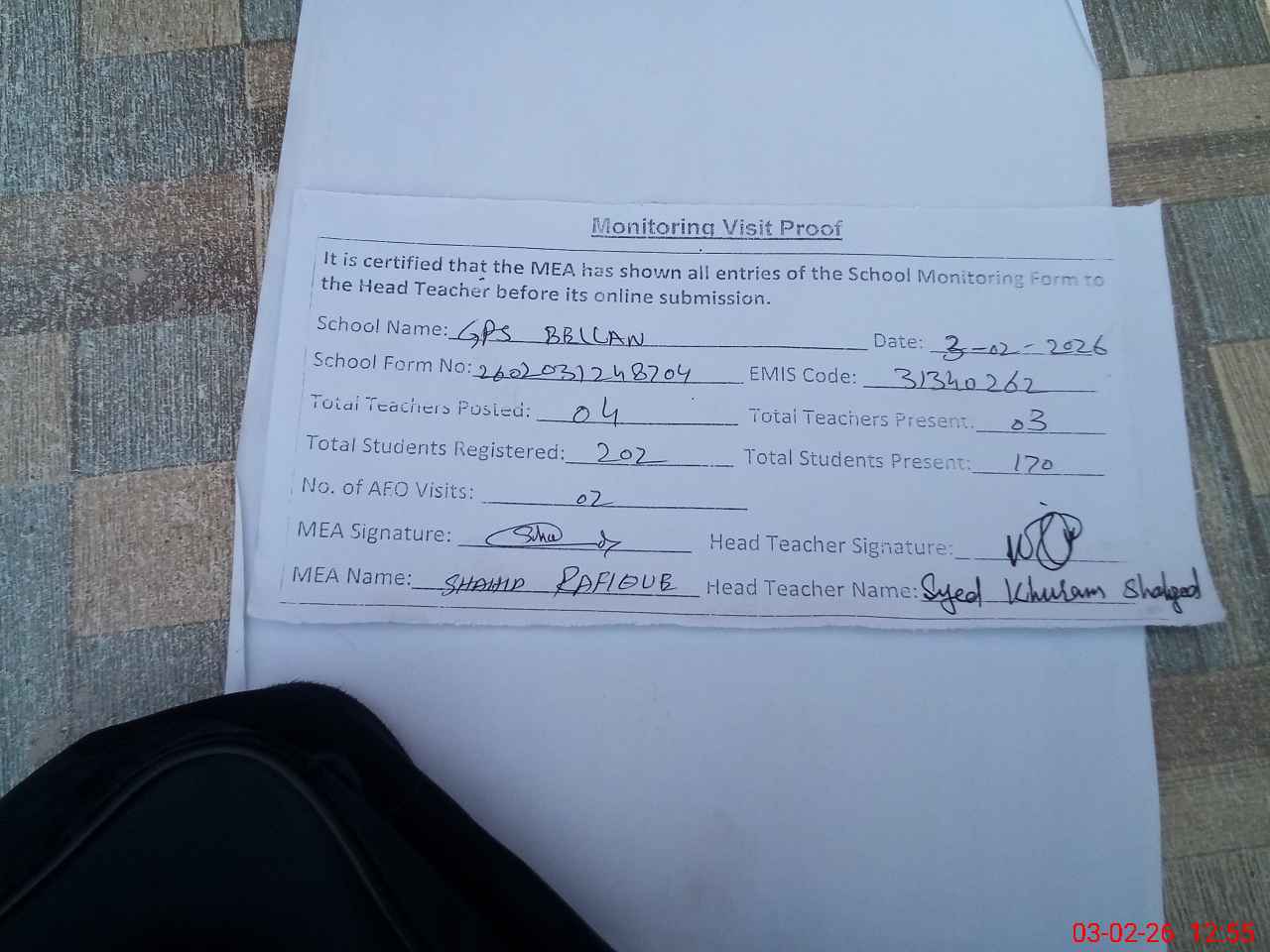 | Certified that this School was Inspected by the Undersigned MEA/DMO Today and the Information Stated Above is as Per Record. | |||||