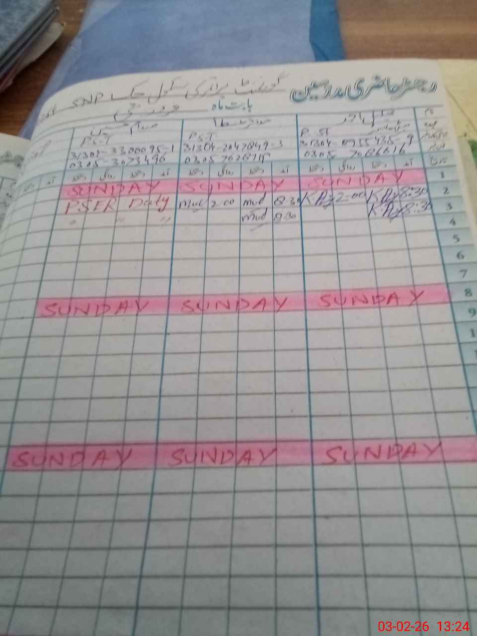 | CNIC | Full Name | Designation | R/C | Absence During Last Calender Month |