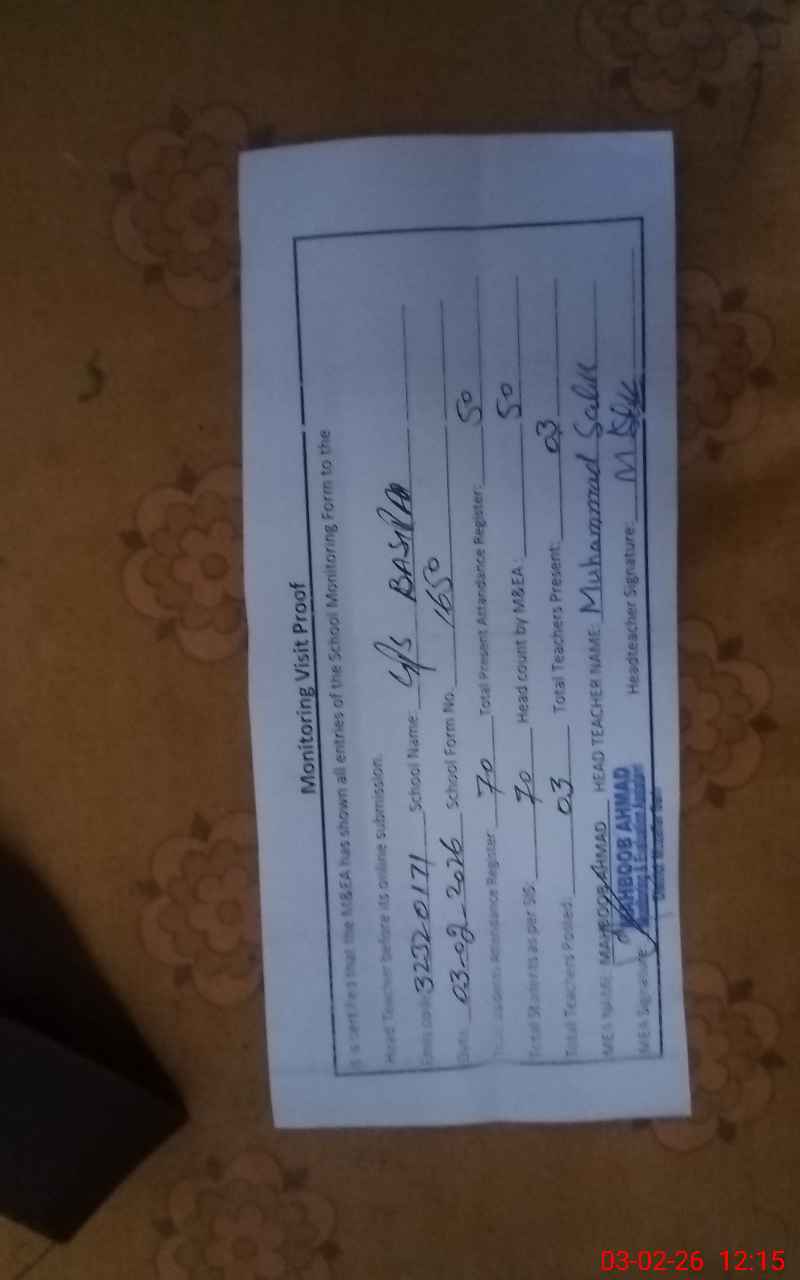 | EMIS Code: 32320171 | Name of School: GPS BASIRA | |||
