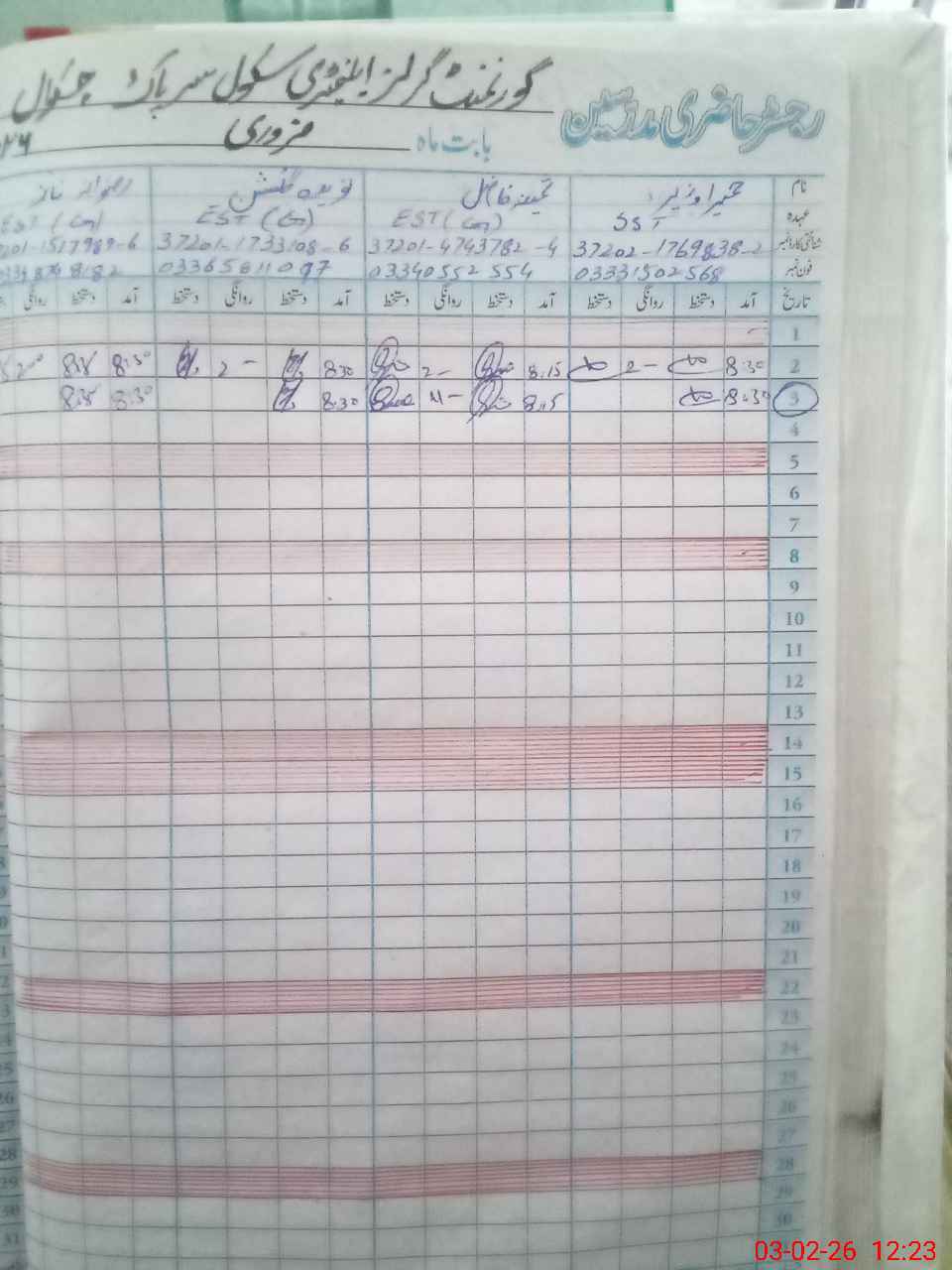 | Name: Hu**** Wa**** Designation: (School Headmaster's/Headmistress's) HEADMIDTRESS Phone/Cell Number: 03**** |