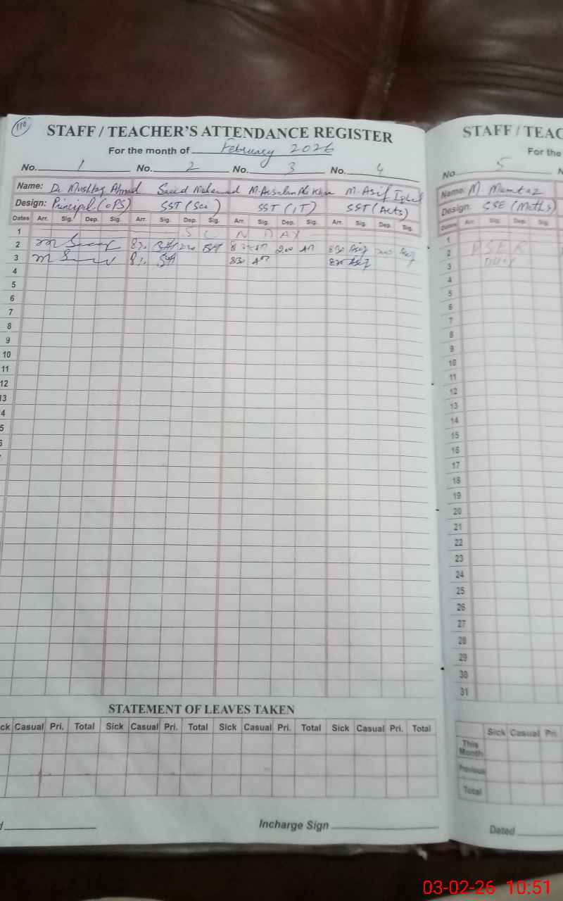 | No. of Students Present - Female | 0 | 0 | 0 | 0 | 0 | 0 | 0 | 0 | 0 | 0 | 0 | 0 | 0 | |||