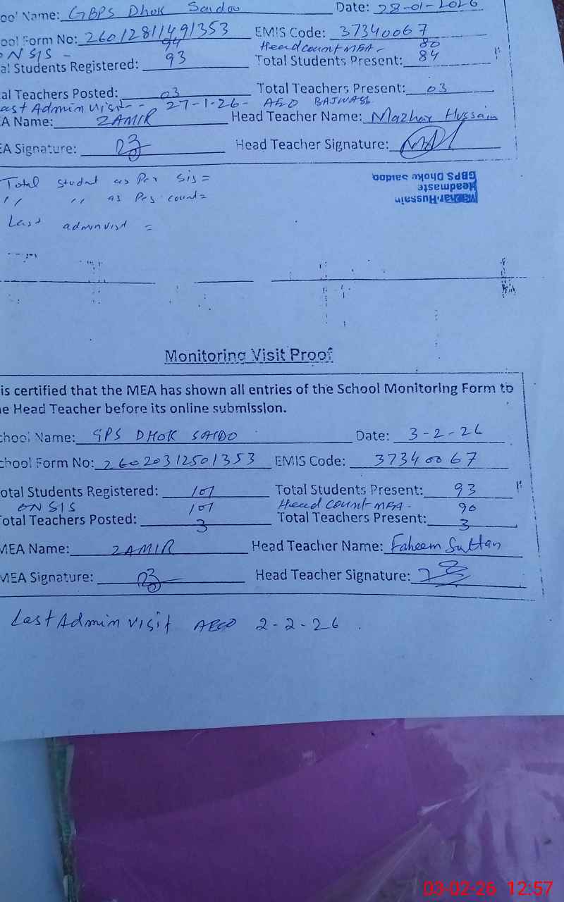 | EMIS Code: 37340067 | Name of School: GPS DHOKE SAIDOO | |||