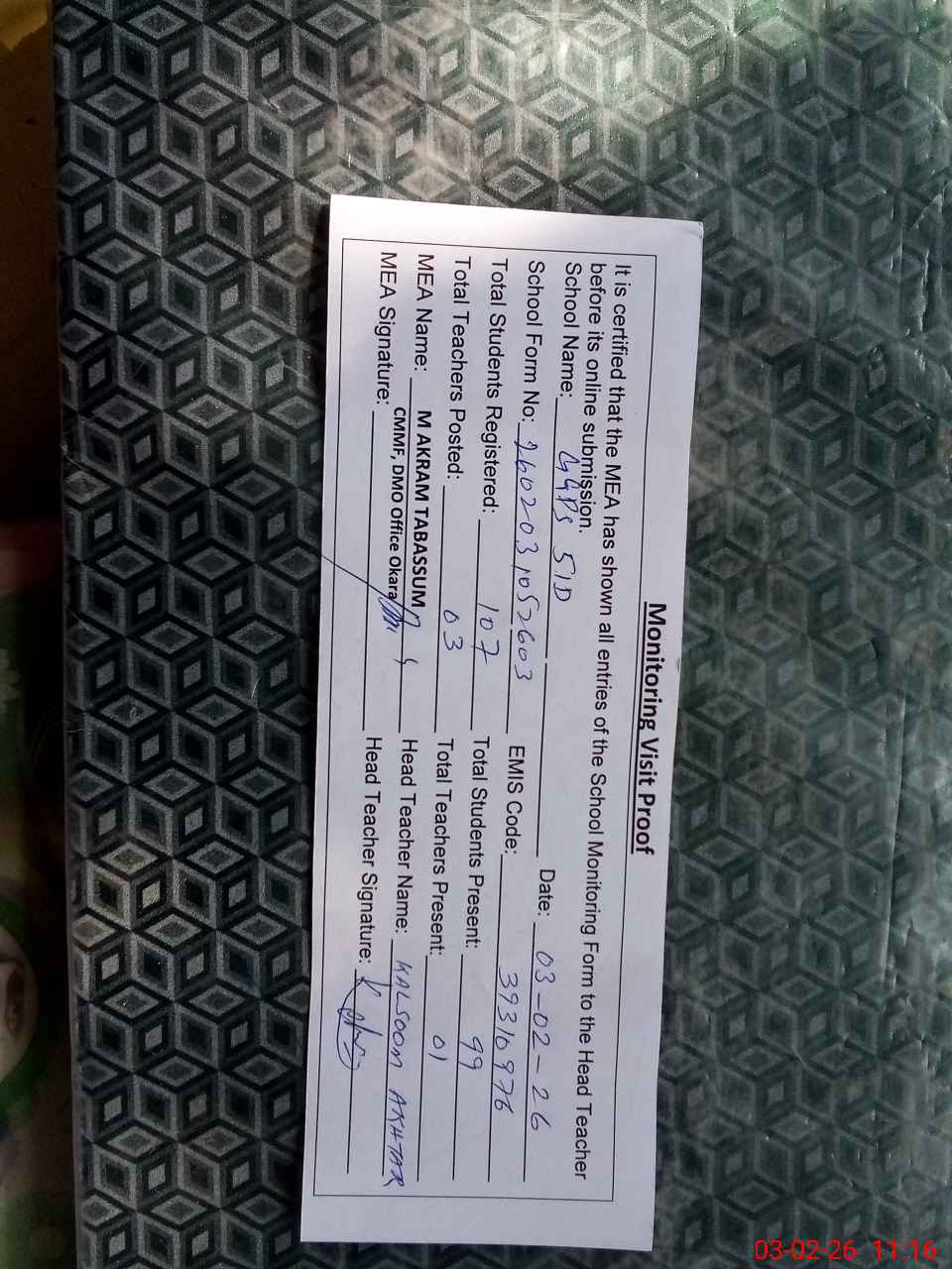| Certified that this School was Inspected by the Undersigned MEA/DMO Today and the Information Stated Above is as Per Record. | |||||